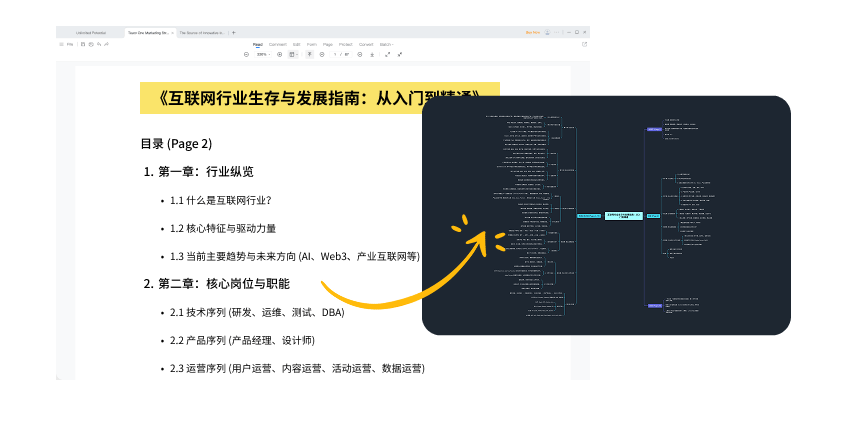 高效总结行业手册和操作指南,将长篇PDF转化为精炼思维导图。